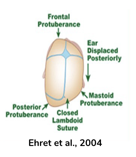Flattening on the back of the head on both sides. It can cause the back of the head or the distance between the ears to look wider.